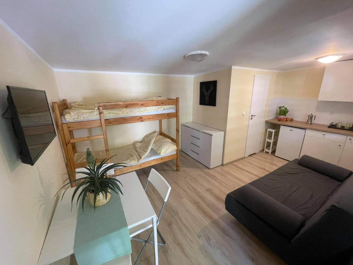Domek. Featuring 1 bedroom, this chalet offers 1 bathroom with a walk-in shower, a seating area and terraceyou can relax. Guests will find a refrigerator and kitchenware in the kitchenette. The chalet also offers a barbecue. This chalet features a private entrance, a tea and coffee maker, a flat-screen TV and a patio. The unit has 2 beds. Domek - 4 osobowy. Powierzchnia pokoju ok.: 25 mkw. ;