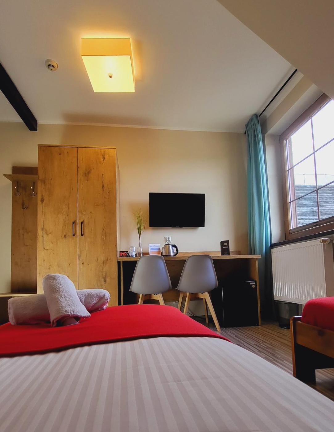 Pokój dwuosobowy typu Standard. The double room provides air conditioning, a tea and coffee maker, as well as a private bathroom featuring a shower and a hairdryer. This double room features a wardrobe, heating and a flat-screen TV. The unit offers 1 bed. Pokój Dwuosobowy - 2 osobowy. Powierzchnia pokoju ok.: 16 mkw. ;