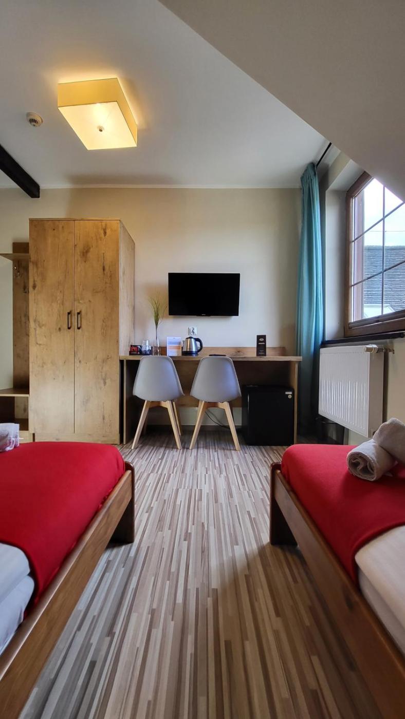 Pokój Trzyosobowy typu Standard. The triple room features air conditioning, a tea and coffee maker, as well as a private bathroom boasting a shower and a hairdryer. This triple room has a wardrobe, heating and a flat-screen TV. The unit has 3 beds. Pokój Trzyosobowy - 3 osobowy. Powierzchnia pokoju ok.: 21 mkw.